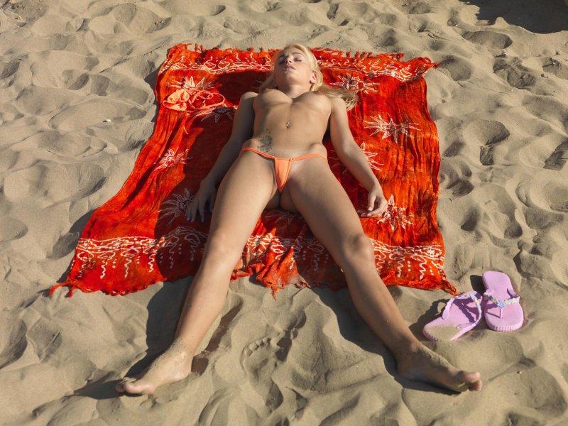 Девушка без трусиков на пляже