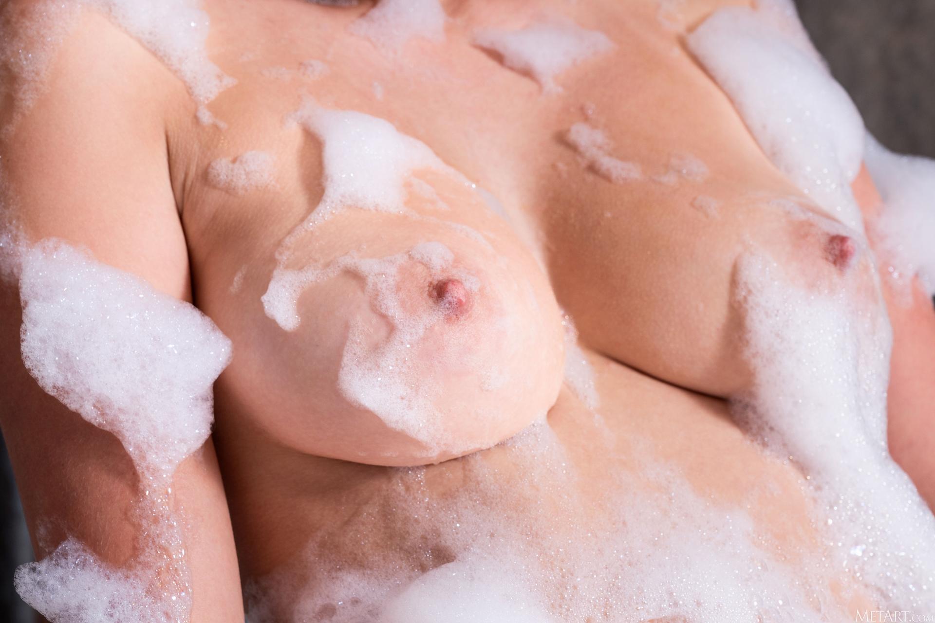 Большие сиськи в пене