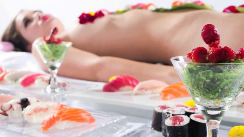 Порно суши на голой женщине